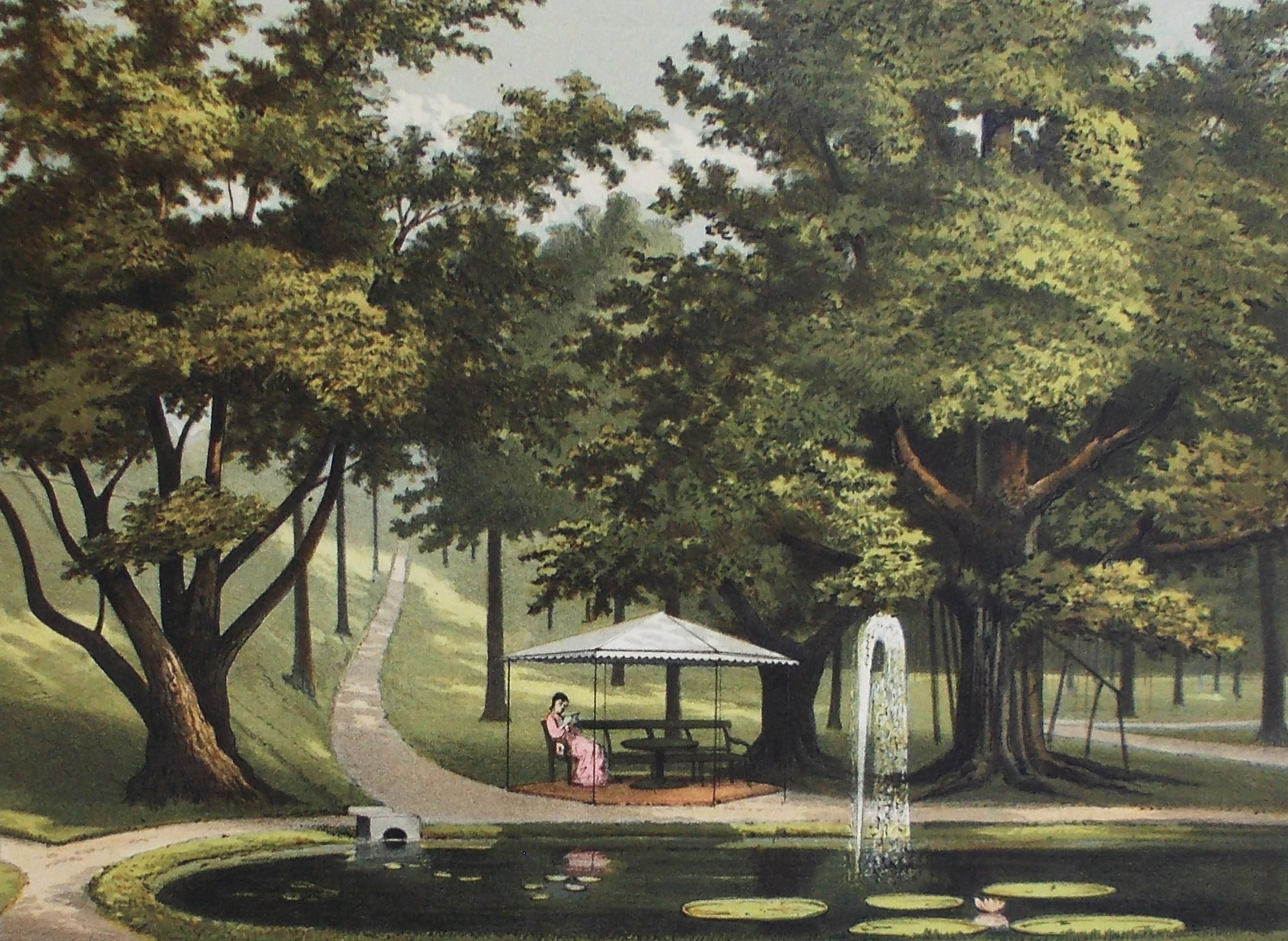 comte ook de Gang Scott in de ‘ville neuve’ (de Bovenstad, dus in het zuiden) hebben bezocht. In elk geval gebruikt hij een afbeelding in houtgravure van het laantje als frontispice van zijn reisverslag (afb. 7). De prent is gebaseerd op een originele albuminedruk die Walter Woodbury en James Page circa mei 1863 gemaakt hadden. (afb. 8)
