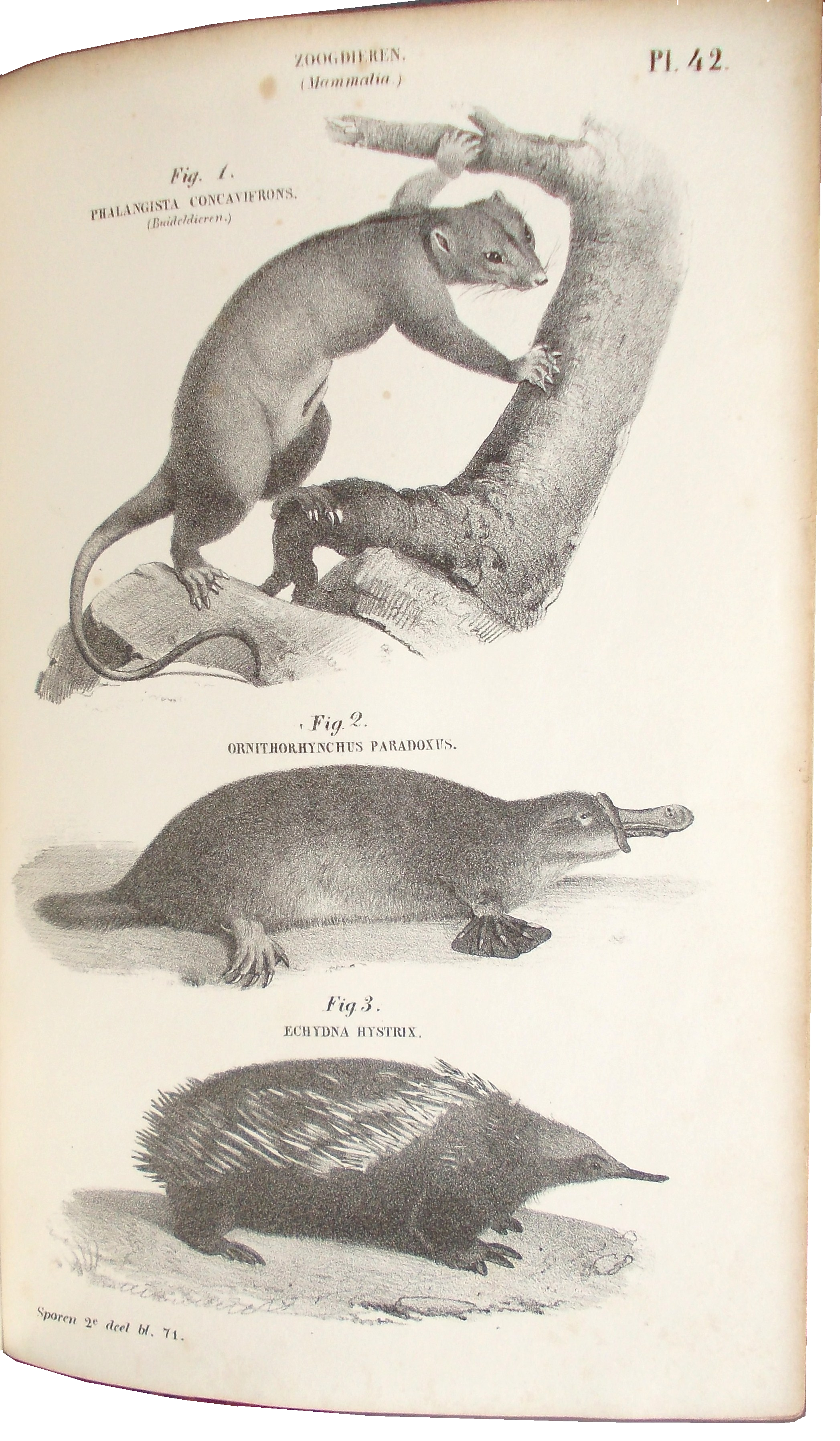 In 1849 besloot de Utrechtse uitgever J.G. Broese de inmiddels ook in Nederland berucht geworden Vestiges uit te brengen. Dit werd vertaald als Sporen van de Natuurlijke geschiedenis der Schepping, bezorgd door de Utrechtse natuur- en scheikundeleraar Johannes Hubertus van den Broek (1815-’96), en voorzien van een inleiding door G.J. Mulder. De publicatie bleek al snel een succes. Het leek daarom aantrekkelijk om bij de oorspronkelijk ongeïllustreerde Engelse Vestiges een Nederlandstalige atlas met fraaie platen uit te brengen. Dit is opmerkelijk, omdat de originele Engelse tekst pas in 1853 van afbeeldingen zou worden voorzien.